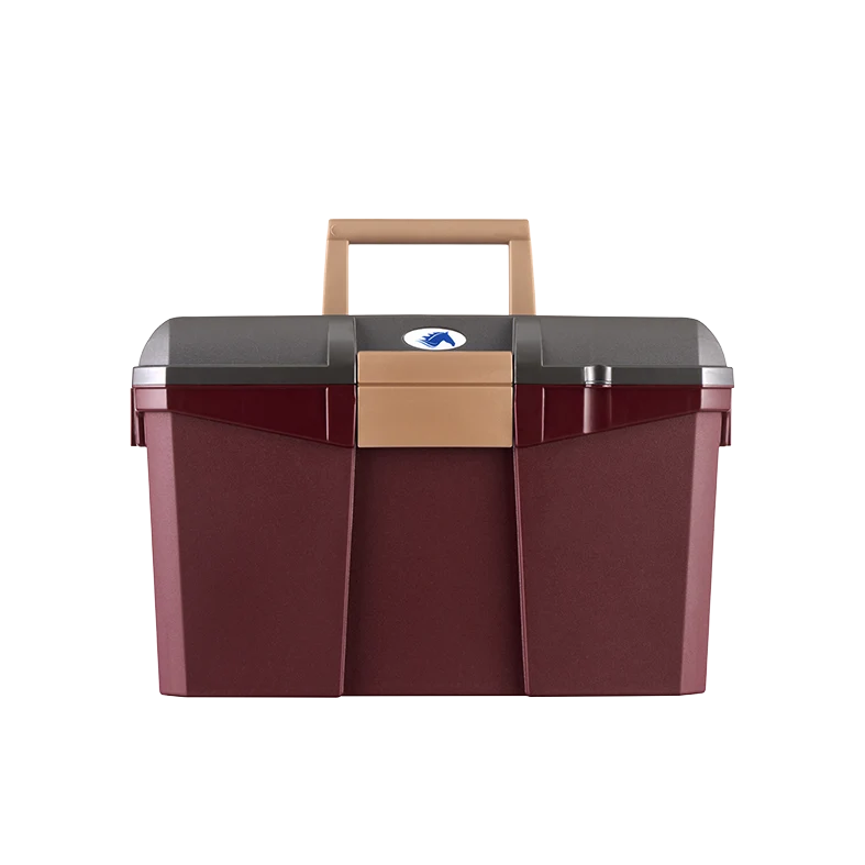This horse care tool box features a movable central tray for easy access to the compartment underneath from both sides, and a removable brush holder so you will not get the case dirty. Material: polypropylene.
